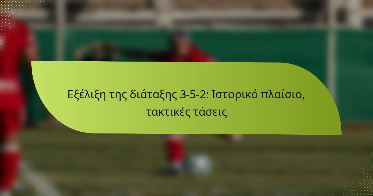 Η διάταξη 3-5-2 είναι μια τακτική ρύθμιση στο ποδόσφαιρο που περιλαμβάνει τρεις αμυντικούς, πέντε μέσους και δύο επιθετικούς, τονίζοντας τόσο τη defensive σταθερότητα όσο και τον έλεγχο του κέντρου. Από την δημοφιλία της στα τέλη του 20ού αιώνα, αυτή η διάταξη έχει εξελιχθεί σημαντικά, προσαρμοζόμενη σε μεταβαλλόμενες τακτικές φιλοσοφίες και ικανότητες παικτών. Η ικανότητά της να κυριαρχεί στην κατοχή της μπάλας ενώ διατηρεί μια ισχυρή αμυντική δομή την έχει καταστήσει αγαπημένη επιλογή μεταξύ των σύγχρονων προπονητών. Τι είναι η διάταξη 3-5-2 στο ποδόσφαιρο; Η διάταξη 3-5-2 είναι μια τακτική ρύθμιση στο ποδόσφαιρο που περιλαμβάνει τρεις αμυντικούς, πέντε μέσους και δύο…