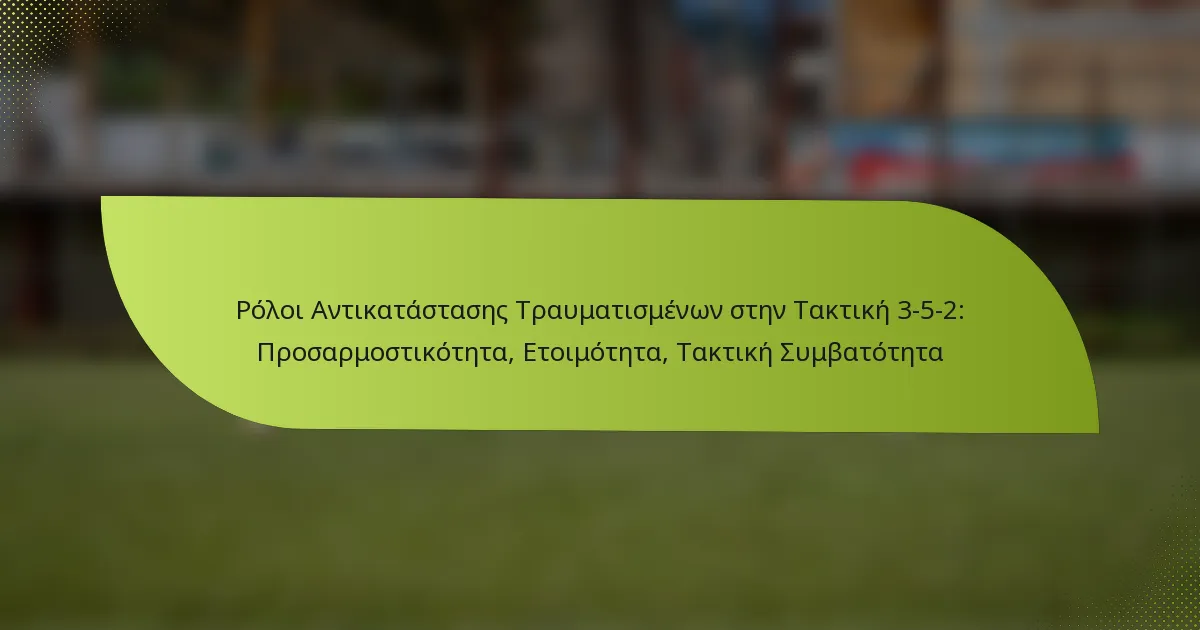 Στην διάταξη 3-5-2, οι ρόλοι αντικατάστασης λόγω τραυματισμού είναι ουσιαστικοί για τη διατήρηση της δυναμικής και της απόδοσης της ομάδας όταν οι βασικοί παίκτες δεν είναι διαθέσιμοι. Οι αποτελεσματικοί αναπληρωματικοί πρέπει να διαθέτουν προσαρμοστικότητα και τακτική κατανόηση ώστε να ενσωματωθούν ομαλά στη υπάρχουσα δομή, διασφαλίζοντας ότι η στρατηγική της ομάδας παραμένει συνεκτική. Εκμεταλλευόμενοι την ευελιξία των παικτών και ενισχύοντας την επικοινωνία, οι ομάδες μπορούν να αντιμετωπίσουν τις προκλήσεις που προκύπτουν από τους τραυματισμούς, διατηρώντας παράλληλα το ανταγωνιστικό τους πλεονέκτημα. Ποιες είναι οι ρόλοι αντικατάστασης λόγω τραυματισμού στη διάταξη 3-5-2; Στη διάταξη 3-5-2, οι ρόλοι αντικατάστασης λόγω τραυματισμού είναι κρίσιμοι για…