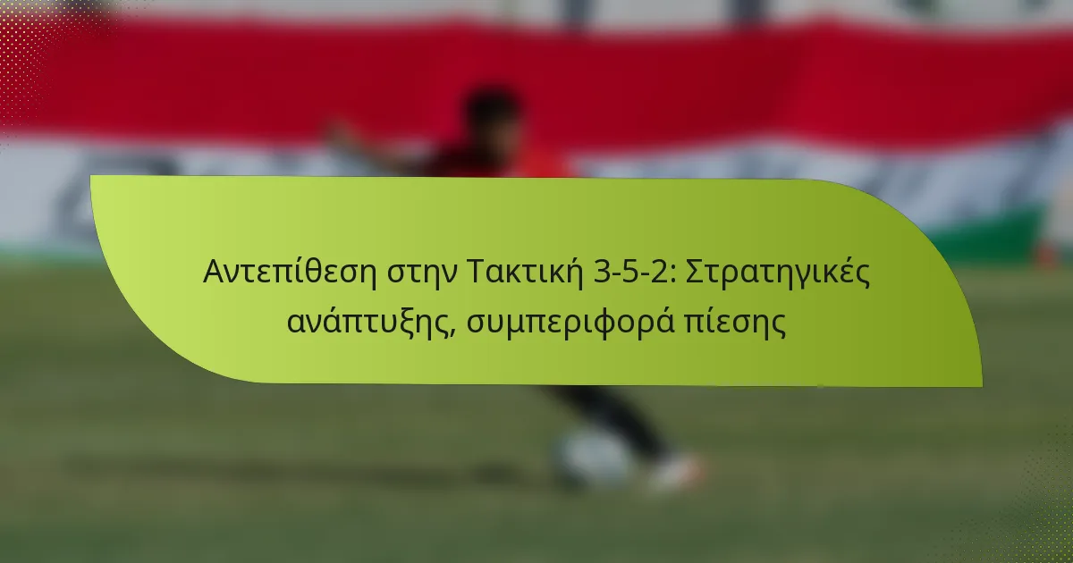 Η διάταξη 3-5-2 είναι μια τακτική ρύθμιση στο ποδόσφαιρο που συνδυάζει τρεις κεντρικούς αμυντικούς, πέντε μέσους και δύο επιθετικούς, προσφέροντας μια ισορροπία αμυντικής δύναμης και επιθετικών επιλογών. Οι αποτελεσματικοί μηχανισμοί πίεσης μέσα σε αυτή τη διάταξη είναι απαραίτητοι για τη διατήρηση της αμυντικής οργάνωσης και την ενεργοποίηση γρήγορων μεταβάσεων στην επίθεση, καθώς καθορίζουν πότε οι παίκτες θα πρέπει συλλογικά να ασκήσουν πίεση για να ανακτήσουν την κατοχή. Η κατανόηση αυτών των μηχανισμών επιτρέπει στις ομάδες να βελτιστοποιήσουν τις αμυντικές τους στρατηγικές ενώ μεγιστοποιούν τις επιθετικές ευκαιρίες. Τι είναι η διάταξη 3-5-2 στο ποδόσφαιρο; Η διάταξη 3-5-2 είναι μια τακτική ρύθμιση…