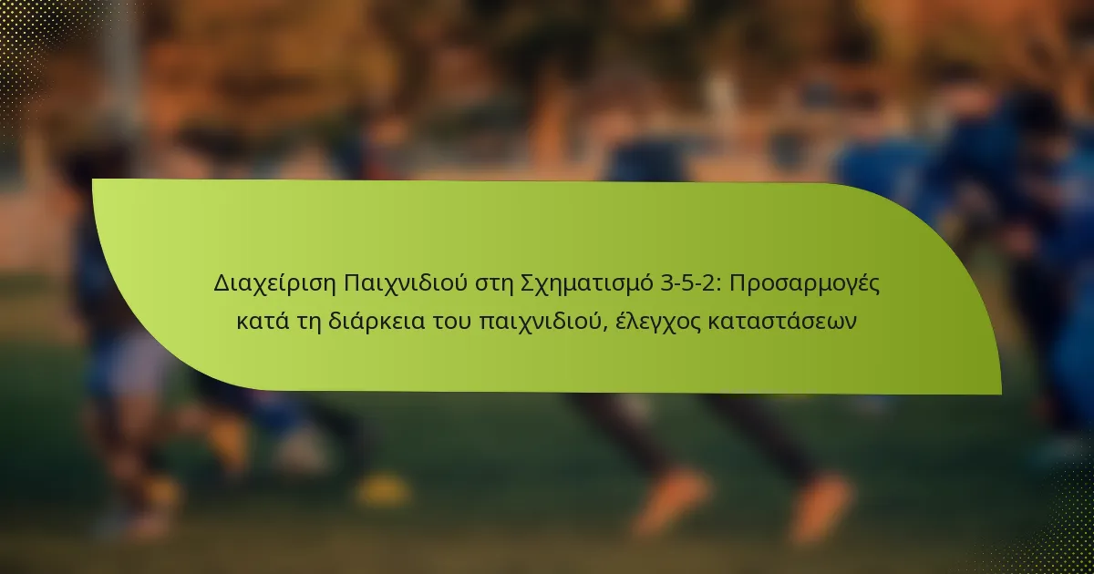 Η διάταξη 3-5-2 είναι μια τακτική ρύθμιση στο ποδόσφαιρο που δίνει έμφαση στον έλεγχο του κέντρου με τρεις αμυντικούς, πέντε μέσους και δύο επιθετικούς, προσφέροντας τόσο αμυντική σταθερότητα όσο και επιθετικές επιλογές. Οι προσαρμογές κατά τη διάρκεια του αγώνα είναι απαραίτητες για τους προπονητές ώστε να διατηρούν τον έλεγχο και να προσαρμόζονται στις εξελισσόμενες δυναμικές του αγώνα, απαιτώντας τακτική ευελιξία και αποτελεσματική επικοινωνία. Κατανοώντας τις καταστάσεις του παιχνιδιού, οι ομάδες μπορούν να βελτιστοποιήσουν τις στρατηγικές τους για να ανταποκριθούν σε διάφορα σενάρια αγώνα, διασφαλίζοντας ότι παραμένουν οργανωμένες αμυντικά ενώ εκμεταλλεύονται τις ευκαιρίες αντεπίθεσης. Τι είναι η διάταξη 3-5-2 και ποια…