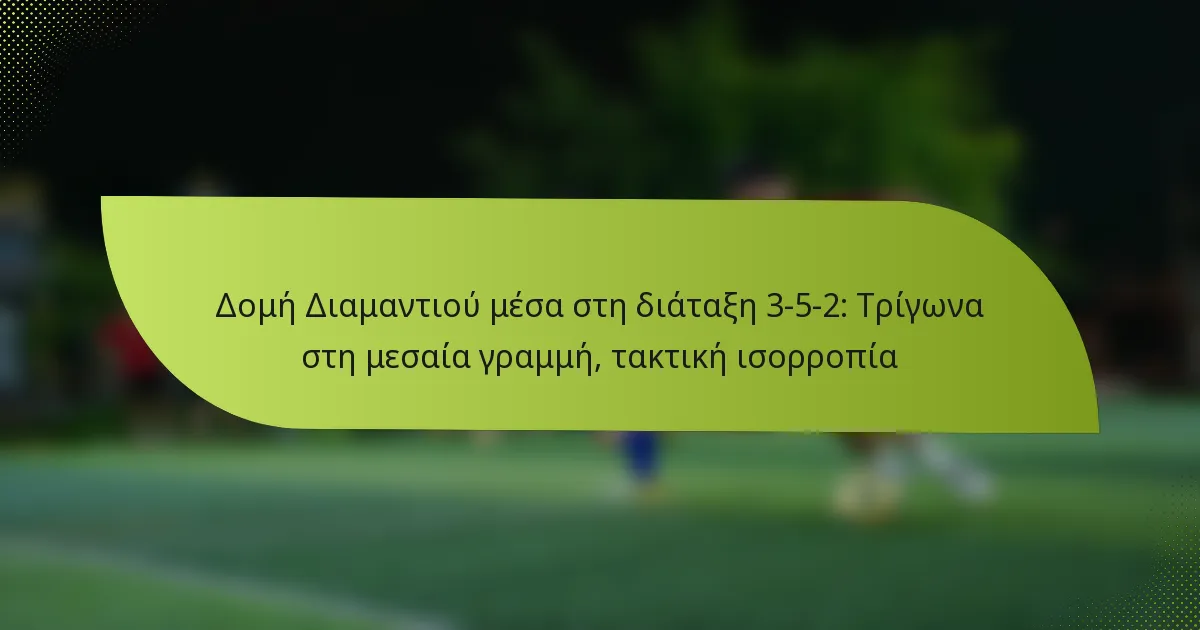 Η δομή διαμαντιού στην διάταξη 3-5-2 είναι μια τακτική προσέγγιση που επικεντρώνεται σε ένα κεντρικό διαμάντι στο μέσο, προσφέροντας τόσο αμυντική δύναμη όσο και επιθετική ευελιξία. Αυτή η διάταξη ενισχύει τα τρίγωνα στο κέντρο, που βελτιώνουν την κίνηση της μπάλας και την τακτική ισορροπία, επιτρέποντας στις ομάδες να ελέγχουν το παιχνίδι και να δημιουργούν ευκαιρίες για γκολ αποτελεσματικά. Τι είναι η δομή διαμαντιού στην διάταξη 3-5-2; Η δομή διαμαντιού στην διάταξη 3-5-2 είναι μια τακτική ρύθμιση που δίνει έμφαση σε ένα κεντρικό διαμάντι στο μέσο, παρέχοντας τόσο αμυντική σταθερότητα όσο και επιθετικές επιλογές. Αυτή η διάταξη δημιουργεί μια ισχυρή παρουσία…